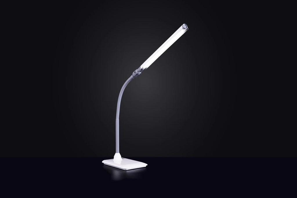 Illuminate your workspace with our new and improved UnoPro Table Lamp. This bright and flexible lamp has high quality daylight LEDs and 95+ CRI to see detail and colours clearly as if you were in natural light. The anti-glare shade allows for a more ergonomic work environment, along with the pivoting head joint and soft touch flexible arm to direct the light where you need it. This lamp is easy to move around the house or take with you when travelling.