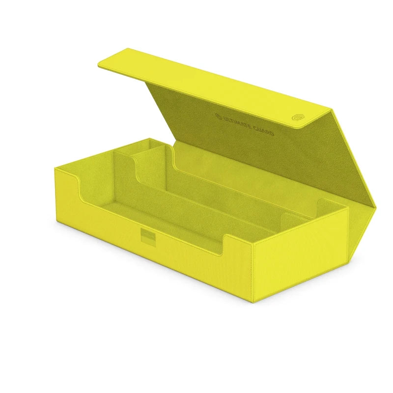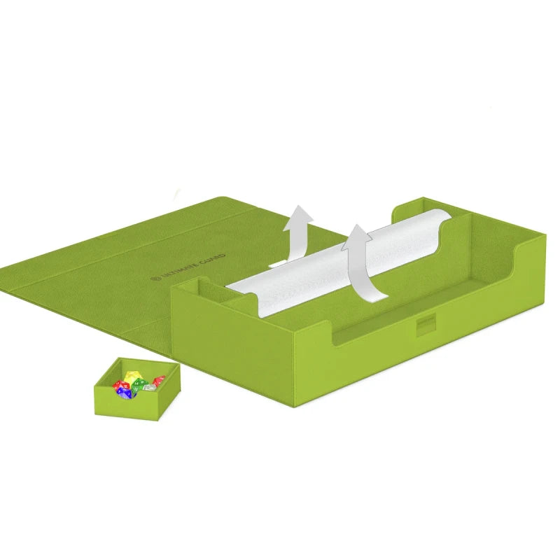 Catch the ultimate summer vibes with Ultimate Guard's Superhive 550+ Xenoskin from the limited "Summer Edition 2025" in four vibrant new colors: Dandelion, Peach, Lime and Lagoon! The Superhive mass storage box is designed to hold two Play-Mats plus up to 550 double-sleeved cards (650 single-sleeved), four Sidewinder 100+ or five Boulder 100+ deck boxes and features an additional tray for accessories. A strong magnetic closure with additional ZnapClaw locking mechanism, resistant Xenoskin material, and quality microfiber inner lining guarantee the safe storage of the Superhive's contents.