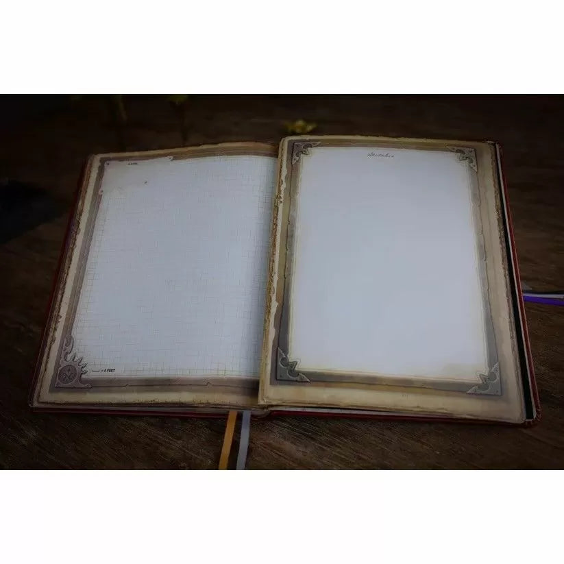 All in a vegan leather cover with book ribbons and lay-flat binding. This is a sturdy book that will survive longer than your character will.